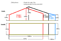 Die Firsthöhe (Mitte des Daches) hat eine Höhe von ca. 3,60 Meter.